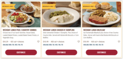 You can order online from the Cracker Barrel menu and if you visit their website, you’ll notice you can also shop items like outdoor furniture, women’s clothing, antiques, and wall décor at prices up to 70% lower with the retailer’s deals.